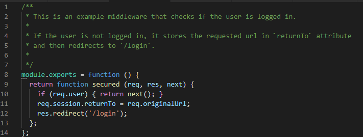 By removing that, instead the check for the user happens and sends back an error property that we then put onto our application state if the user's not logged in. Otherwise, we put the user's properties onto our state for us to use.